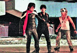 一身黑恤衫、黑褲、長(zhǎng)靴,肩膀掛上槍袋、長(zhǎng)槍,打扮有型,英氣十足;但和女主角江語晨連吻戲都沒有!