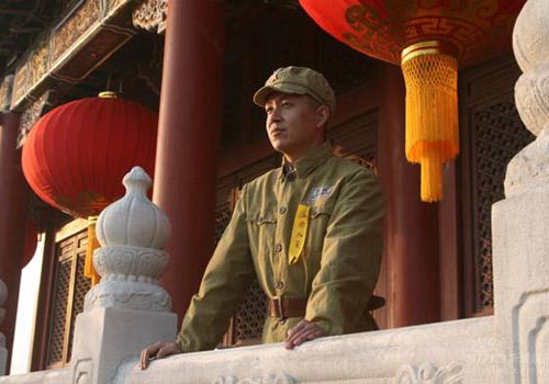 扎宮燈的“封建殘余”藺老爺可不普通,雖然是配角,舉手投足都是戲。不管是他抬頭望著拿空慈竹的老屋頂,還是感慨地看著天安門城墻上隨風(fēng)飄動(dòng)的那些有生以來做得最大的紅燈籠,還是在開國(guó)大典時(shí)拿下帽子向天安門向毛主席深鞠一躬,都讓人心中泛起一種說不出的感覺,是去舊迎新?據(jù)葉導(dǎo)介紹,這位藺老爺就是著名的相聲表演藝術(shù)家田立禾。