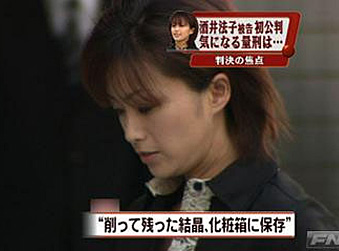 中新網(wǎng)10月26日電 被控違反《興奮劑取締法》持有、使用毒品的日本女星酒井法子(38歲,本名高相法子)首次公審26日在東京地方法院(審判長:村山浩昭)進(jìn)行。酒井在法庭上對起訴內(nèi)容供認(rèn)不諱。檢方求刑1年零6個月,判決計劃將于11月9日下達(dá)。