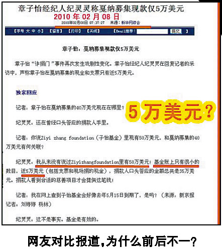 籌款之時見諸報端的善款數(shù)字,與網(wǎng)友各處追查而得的結(jié)果相差甚遠(yuǎn),有人認(rèn)定章子怡中飽私囊,打著慈善的名號謀利。章子怡究竟募集了多少善款?700萬美元?200萬美元?100萬美元?50萬美元?章子怡說,在戛納募捐現(xiàn)場籌集到的現(xiàn)金實(shí)際只有1392.36美元。