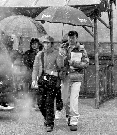 電視劇《延安愛情》悄然在沈開機(jī),男主角鄧超昨天首現(xiàn)關(guān)東影視城片場。得知消息后,本報記者冒著棋盤山四月飛雪前往探班,親眼見證“熒屏情侶”來沈拍攝的第一場戲