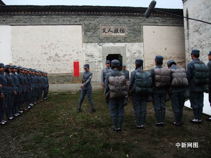 中新網(wǎng)9月18日電 大型建國(guó)獻(xiàn)禮片電視劇《鐵軍之花》(原名《新四軍女兵》)正在橫店拍攝。臺(tái)灣男演員黃維德在劇中飾演一名新四軍戰(zhàn)地服務(wù)團(tuán)的團(tuán)長(zhǎng),一路帶領(lǐng)新四軍女兵忠誠(chéng)為黨效力。