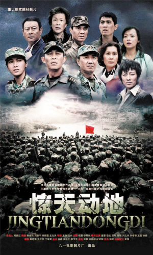 在紀(jì)念汶川大地震一周年之際,八一電影制片廠舉行了再現(xiàn)部隊官兵抗震救災(zāi)的故事片《驚天動地》的看片會。參拍部隊和四川災(zāi)區(qū)群眾代表共同出席了看片會。