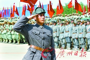 日前,《建國大業(yè)》劇組在北京南苑機場拍攝了全片規(guī)模最大、氣魄最足的一場戲——1949年3月25日,毛澤東主席在北平西苑機場進行了新中國成立之前的閱兵儀式“西苑機場閱兵”。