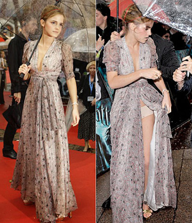 以往大家對(duì)《哈利·波特》的關(guān)注都集中在丹尼爾·雷德克里夫身上,如今,“赫敏”的扮演者英國(guó)小美女艾瑪已經(jīng)長(zhǎng)得亭亭玉立,吸引了全部的目光。低胸碎花長(zhǎng)裙將她襯托得嫵媚動(dòng)人。但她顯然沒(méi)有預(yù)料到在為粉絲的照片簽名時(shí),呼呼大作的風(fēng)會(huì)讓她裙擺下的大腿春光乍現(xiàn)。