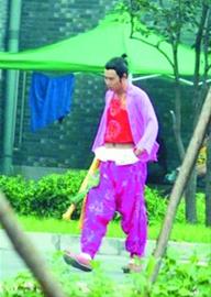 前日下午2時左右,小沈陽在幾位工作人員的陪同下走出攝影棚。一身“粉裝”的他,里面竟然穿了一件露臍的紅色肚兜,看起來更像是二人轉(zhuǎn)演員!看來,在片中負責(zé)搞笑的小沈陽,穿著打扮也跟老本行相似,演起來應(yīng)該會更加得心應(yīng)手。與小沈陽的搞笑打扮相比,孫紅雷的造型多了一分英武之氣。在攝影棚外打電話的孫紅雷,身著藍衣藍褲,外面套了一件黑色護甲,看起來像是一個忍者。韓貝塔