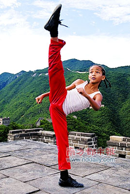 由成龍和威爾·史密斯的兒子賈登·史密斯(JadenSmith)主演的《功夫夢》(The Karate Kids)近日曝光了幾張官方劇照,畫面所見,成龍在長城上訓練賈登·史密斯,小子架勢十足。該片由中影集團、索尼·哥倫比亞和威爾·史密斯(Will Smith)旗下的Overbrook娛樂公司聯(lián)合投資拍攝,將于明年6月11日在北美公映,中國也將同步引進。