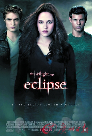 《暮光之城3:月食》將在今年6月30日登陸北美院線(xiàn)!赌汗庵恰肥亲罱旰萌R塢最紅的商業(yè)系列電影之一。峰會(huì)影業(yè)2008年推出第一集時(shí),只用3500萬(wàn)美元就收回了1.9億美元。去年的第二集則打破了多項(xiàng)首映周票房紀(jì)錄,全球累計(jì)票房高達(dá)7億美元。(余樂(lè))