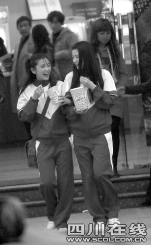 李冰冰、全智賢主演的《雪花與秘扇》日前正在上海熱拍。近日,兩大美女集體出現(xiàn)在上海鬧市中心,不過卻未引起騷亂。因?yàn)椋瑑纱竺琅陌缦嘀鴮?shí)讓人大跌眼鏡,白色的中學(xué)生校服,長發(fā)披肩,全智賢在發(fā)梢別上了可愛的粉色蝴蝶狀發(fā)夾,李冰冰還弄了一個當(dāng)年最流行“金魚頭”,兩人手牽手,吃著爆米花,有說有笑,難怪連路人都沒有發(fā)現(xiàn)。(記者 馬丹)