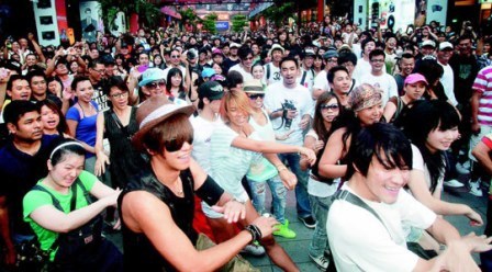 “今日新聞”消息,自從流行樂天王邁克爾.杰克遜辭世后,世界各地不斷傳出為了紀(jì)念他而辦的快閃活動(dòng)。臺(tái)灣地區(qū)也不落人后,知名舞者大目昨天發(fā)起快閃活動(dòng),透過網(wǎng)絡(luò)號(hào)召杰克遜粉絲,加上舞者,約有500人集體大秀杰克遜經(jīng)典舞蹈《Beat It》,一同跳出對(duì)他的無盡思念。