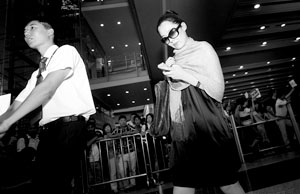 昨天下午2點(diǎn)多,記者在航站樓等待中國(guó)游泳隊(duì)回國(guó)時(shí),發(fā)現(xiàn)了一位星味十足的女子走出國(guó)際出口。