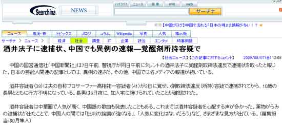 中新網(wǎng)8月7日電 日本外務(wù)省“中國情報局”(searchina)網(wǎng)站今天刊登消息,對中新網(wǎng)快速報道“酒井法子涉嫌違反《興奮劑取締法》,警方向檢方申請逮捕狀”,評價是“罕見的迅速”。