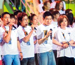 郭富城昨演唱〈愛的呼喚〉溫暖災(zāi)民,他專程從北京趕返香港,表示曾經(jīng)在臺灣生活過一段日子,“臺灣是我半個家,當(dāng)?shù)弥_灣發(fā)生水災(zāi),我感受很深,每次聽到臺灣有人受傷便心酸,所以我一定要返港出一分力,大會叫我做什么便什么。除了捐錢,我覺得要安撫災(zāi)民,我的歌迷會已計畫幫手籌款!