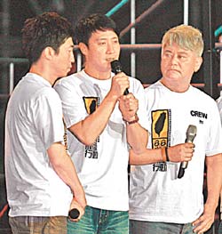 劉德華、黎明上周來臺參加中視募款活動,兩人同臺中間夾著一個人,當(dāng)劉德華說話時,其它藝人都看著他且點頭附和,黎明則雙手抱胸沒有表情。