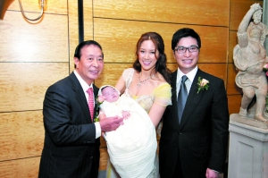 千億新抱徐子淇與丈夫李家誠的次女李晞兒前日滿3個(gè)月大,下午先舉行“ Secret Garden”兒童茶會(huì),晚間又舉行豪華百日宴,估計(jì)花費(fèi)約300萬元。雖然不及姐姐晞彤當(dāng)初連擺兩晚的800萬元“發(fā)實(shí)宴”,但同樣深受寵愛。