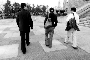 8時40分,本案7名被告人的家屬和辯護律師聚集到法院傳達(dá)室,辦理旁聽及代理辯護手續(xù)。臧天朔的家屬是一個中年男子,他的律師也不是記者熟悉的“大腕”。院方的安檢比較嚴(yán)格,除了禁止攜帶相機、錄音筆,連手機都要求不能帶入法庭。