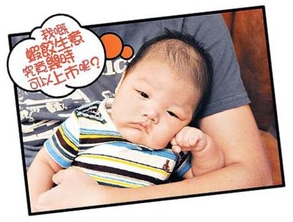 香港“成報”消息,潮媽Kelly在博客上寫道:“蝦餃仔出世已經(jīng)有一百日啦!好開心見到蝦餃仔一日比一日長大,他現(xiàn)在已經(jīng)有16. 5 磅!大家都成日問我有沒有蝦餃仔的近照,現(xiàn)在就同各位哥哥姐姐見下面啦!“由于愛兒踏入出生后一百日,Kelly專程拍下一張近照放在blog上,只見蝦餃仔眼睛炯炯有神,樣子與出世時判若兩人,頭發(fā)亦很濃密。雖然已過百日,但劉家并無擺百日宴,以免感染豬流感。