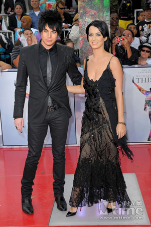 美國洛杉磯當?shù)貢r間10月27日晚上6點,電影《邁克爾·杰克遜:就是這樣》在洛杉磯諾基亞劇院舉行全球首映。本片主創(chuàng),以及邁克爾·杰克遜生前的親朋好友、各界名流等齊聚首映紅毯。圖為“美國偶像”大賽亞軍亞當·蘭伯特攜手人氣女歌星凱蒂·派瑞前來捧場。亞當·蘭伯特是美偶舉辦八年以來最受關(guān)注和最受爭議的選手之一,最新他還為熱門影片《2012》演唱了主題曲。凱蒂·派瑞的低胸禮服性感大氣,吸引眼球。