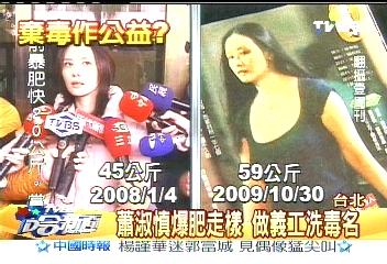 4年前金鐘獎(jiǎng)星光大道上,一襲深V露胸禮服,驚艷全場,香港導(dǎo)演王晶一度想塑造蕭淑慎成為新一代性感女神,卻因?yàn)樯娑緮嗨痛蠛们巴,身形也隨著吸毒、勒戒,忽胖忽瘦,上個(gè)月又爆出例行驗(yàn)?zāi)驒z驗(yàn),驗(yàn)出毒品反應(yīng),現(xiàn)在努力做公益的蕭淑慎,能不能擺脫“毒蟲”印象,有待后續(xù)觀察。