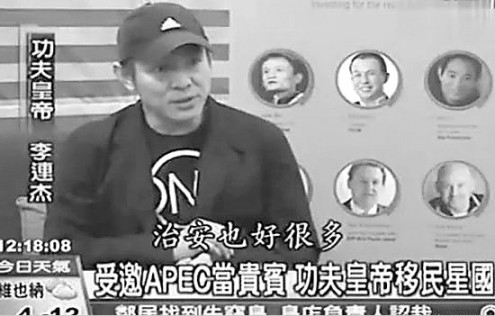 在采訪中,被曝在新加坡有價值上億豪宅的李連杰也談及移民新加坡一事。當(dāng)時主持人問他現(xiàn)在移民新加坡了,對新加坡有何看法,李連杰說:“相比其他城市,新加坡干凈很多,治安好很多,天氣也熱很多。多種文化,有一些西方來的企業(yè)文化。這些要素都是吸引我的地方!