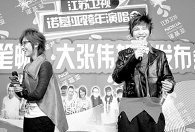 周筆暢、大張偉加盟江蘇衛(wèi)視跨年演唱會(huì)新聞發(fā)布會(huì)昨日在京舉行。雖說大張偉年齡比周筆暢大,出道時(shí)間也比周筆暢長(zhǎng),但面對(duì)眼前這位“新人”,大張偉自稱“筆迷”,不僅極力討好,和周筆暢說起話來還一口一個(gè)“您”。