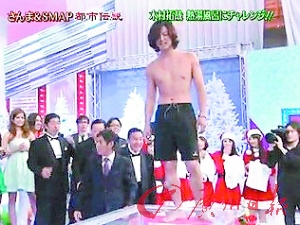 日本杰尼斯天團(tuán)SMAP最近一直被外界唱衰人氣下滑,因此在年底特別節(jié)目當(dāng)中,祭出“酷刑”搶救收視率,扒掉人氣最旺的木村拓哉,大秀鮪魚肚泡高溫?zé)崴,木村不僅當(dāng)場寬衣解帶,還被熱水燙得哇哇叫,下猛藥果然讓該集節(jié)目狂飆近6個百分點(diǎn)。