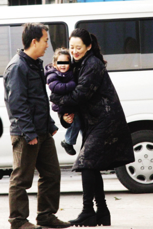昨天見面會(huì)結(jié)束,記者在大門口遇見了準(zhǔn)備坐車離開的許晴,卻出人意料地看見她正抱著由另一輛車剛剛送過來的一個(gè)小女孩,開心地在自己的座駕——一部頂級(jí)越野車前玩著。她們旁邊是助理和一個(gè)穿著普通的中年婦女。許晴和小女孩十分親昵,而兩人的眼神交流也十分有“母女相”。記者見狀趕緊按下快門,許晴過了幾秒才發(fā)現(xiàn)有人拍照,立即放下懷中的孩子,將手插在大衣口袋直直向著車的方向走去,臉上也沒了笑容!摆s緊上車走吧!”許晴發(fā)話。不過記者卻親耳聽到小女孩在喊著:“媽媽,明天我們?nèi)ツ睦锇。俊焙⒆觽(gè)子太矮,也看不清是朝哪個(gè)方向說話。孩子話音剛落,一旁的中年婦女立即抱起小女孩拉開車門坐了上去。