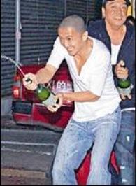 之后,工作人員便拿出香檳,霆鋒及一幫演員早有默契的互望,接著便用香檳互噴,隨后,謝霆鋒更興奮得走出馬路,嚇得在場(chǎng)的工作人員大叫他“小心!”;娤銠壓,謝霆鋒等人才乖乖走回鋪內(nèi),與工作人員互相碰杯、齊飲香檳,場(chǎng)面十分熱鬧。