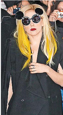 昨天,樂壇百變女王Lady Gaga以米老鼠眼鏡的不尋常造型出席歌友會。她呼吁歌迷上她的購物網(wǎng)購買她設(shè)計的T恤,所得將全數(shù)捐給海地災(zāi)民。
