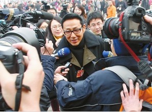 昨日,全國政協(xié)十一屆三次會(huì)議在北京開幕,文體明星代表成為追訪的焦點(diǎn)。楊瀾、央視名嘴朱軍、崔永元、《新聞聯(lián)播》播音員李瑞英、演員陳道明、著名歌唱家關(guān)牧村、韓紅、導(dǎo)演馮小剛、體育明星劉翔遭圍堵采訪。劉翔在政協(xié)會(huì)議上遭圍堵露求救表情,離場(chǎng)時(shí)學(xué)聰明跑步開溜,讓記者們一路狂追。(春城晚報(bào))