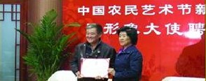 昨日下午,首屆“中國農(nóng)民藝術(shù)節(jié)”新聞發(fā)布會暨形象大使聘請儀式在中國農(nóng)業(yè)展覽館舉行,農(nóng)業(yè)部總經(jīng)濟師張玉香向趙本山頒發(fā)了“形象大使”的聘書!爸袊r(nóng)民藝術(shù)節(jié)”是由農(nóng)業(yè)部、文化部和中國文聯(lián)共同主辦的,旨在展示新農(nóng)村、描繪新生活。最重要的堅持、保護、傳承、開發(fā)農(nóng)民文化藝術(shù)資源,給農(nóng)民增收。