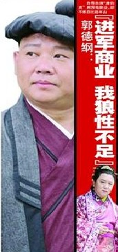 昨日,郭德綱接受本報(bào)專訪,說起是不是效仿趙本山,他表示自己“進(jìn)軍商業(yè)狼性不足”。