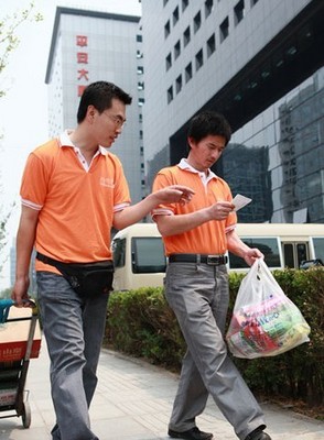 因為一張照片,而紅遍網(wǎng)絡(luò)的“犀利哥”程國榮,8日來到北京,開心體驗“配送”工作,并希望可以借此實現(xiàn)自我價值。