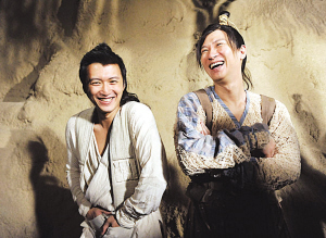 《財(cái)神客!肥峭蹙У墓叛b喜劇新作,王晶戲稱是《黑白森林》的古裝版,片中謝霆鋒和張家輝演一對“愛生事的好朋友”。據(jù)香港媒體透露,謝霆鋒此次在橫店拍戲,張柏芝也趕來探班。但謝霆鋒就是不承認(rèn)。之后當(dāng)記者和他聊起世界杯時(shí),謝霆鋒說漏了嘴,“我晚上有事情,端午節(jié)要到了嘛,而且我兒子的滿月也快到了,要和太太商量一下怎么過,難得她來找我……”