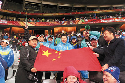 據(jù)悉,經(jīng)過(guò)十多小時(shí)之航程,孫楠終到達(dá)開(kāi)普敦,放下行李后馬上直奔球場(chǎng)觀看衛(wèi)冕冠軍意大利隊(duì)和巴拉圭隊(duì)之比賽。比賽在雨中進(jìn)行,孫楠說(shuō):“雨中看球,感覺(jué)還不錯(cuò)。意大利隊(duì)的表現(xiàn)不錯(cuò),就是沒(méi)有突出的前鋒!痹诒荣惤Y(jié)束后,一眾明星遇上在街頭慶祝的歌迷,大伙就加入一起歡呼跳舞。問(wèn)到孫楠是支持哪個(gè)球隊(duì)時(shí),孫楠表示:“如果沒(méi)有中國(guó)隊(duì),我會(huì)是所有球隊(duì)的球迷!
