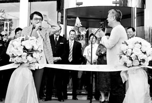 昨天下午,在金寶街,知名笑星趙本山和國際影星成龍應(yīng)邀參加了某購物中心開業(yè)典禮。由于在場有外國嘉賓,趙本山在致辭時,出人意料地以一口英語作開場白,成龍“挺身而出”,充當(dāng)起翻譯。
