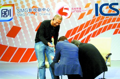 雖然雙方交流長達(dá)4個多小時,但馬中駿、張國立等人頻頻發(fā)揮幽默本色,現(xiàn)場笑聲不斷。張國立說到興起時,大力推銷自己,并讓美方嘉賓看自己演的戲,《瘋狂主婦》導(dǎo)演大衛(wèi)動情之下竟當(dāng)場跪拜張國立。
