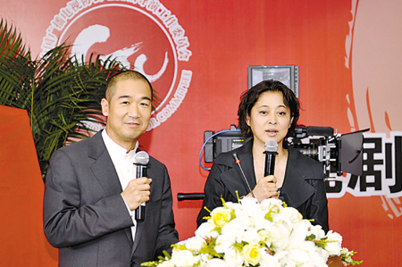 昨天的成立大會(huì)更像是一場(chǎng)眾導(dǎo)演的聚會(huì),不少人都身穿便服到場(chǎng),而主持人倪萍和張國(guó)立更是大搞冷幽默。倪萍先把“矛頭”對(duì)準(zhǔn)央視:“中央臺(tái)影視部的汪國(guó)輝主任,你們最招人恨了。到底什么樣的戲能上你們央視呀?今天倒是講講清楚!”接著她話鋒一轉(zhuǎn),又把責(zé)任推給張國(guó)立:“這事跟我沒關(guān)系,是張國(guó)立教我說(shuō)的!北弧跋莺Α钡膹垏(guó)立只好干笑兩聲。會(huì)場(chǎng)氣氛分外輕松。