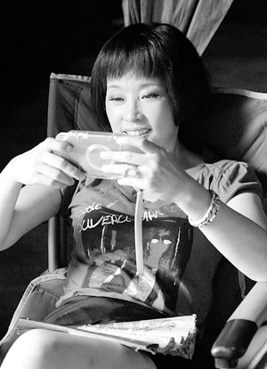 記者見到劉曉慶時,她正斜坐在椅子上玩PSP,上身穿一件深藍色蓬蓬袖T恤,下身穿一條黑色短裙,腳蹬坡跟涼鞋,給人青春靚麗的感覺。“您喜歡玩益智類游戲。俊币妱詰c在玩一款益智類游戲,記者問道!拔沂裁炊纪妫鞣N類型的,就是小P里游戲不多。”劉曉慶邊盯著PSP的屏幕,邊答道!靶是什么?”記者不解地問道。