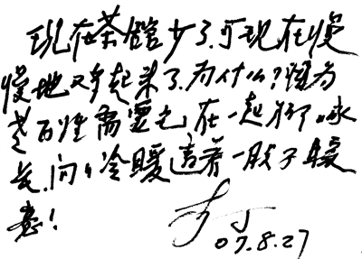 東方聞櫻說,李丁多次打電話詢問開播的消息,今年春節(jié)老爺子還抱怨:“我好不容易當了回男主角,這下可好,讓我等了3年還沒結(jié)果,真要等我‘走’了才播啊?我演了那么多戲,不在乎露不露臉兒,我遺憾的是老年人的電視劇為什么跟人見面這么難!”東方聞櫻提起這段往事非常心酸。在她眼里,李丁是個幽默感十足的智慧型老人,尤其在表演上有思想。“在劇組里,我總愛跟他談心。別人都認為李丁腦子糊涂是老年人了,可我知道他心態(tài)年輕是個老頑童。”東方聞櫻表示,近日她將趕往李丁的家中吊唁,帶去《老人的故事》送老爺子走完最后一程。記者 楊楊 王錚