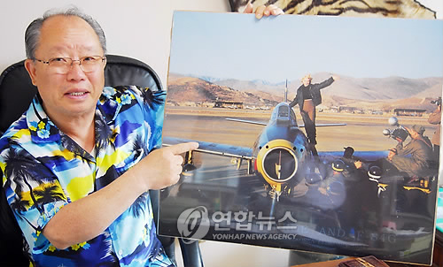 據(jù)“韓聯(lián)社”消息,照片中的夢(mèng)露身穿褐色褲子和黑色航空夾克衫,她在大邱K-2機(jī)場(chǎng)以八公山為背景,站在“F-84G”戰(zhàn)斗機(jī)左翼上面,并高舉左臂,臉上露出燦爛的笑容。照片大小是橫67厘米,豎59厘米。