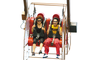 沖上云霄、過山車、大擺錘……小沈陽一共玩了八個項(xiàng)目,全是主題公園里最考驗(yàn)人膽量的游樂項(xiàng)目。但小沈陽完全不放在眼里,他挑選了過山車的第一排坐;而坐在海盜船上的時候,他卻又挑了最后一排,甚至在海盜船擺蕩至最高處的時候,他竟然拉開了安全擋桿,站了起來大喊大叫,“完全玩瘋了,倒是下面的游客被他嚇得半死。”陪同的楊小姐說:“他告訴我,他很喜歡去游樂園玩,最喜歡迪斯尼!毙∩蜿栕詈筮對龍門陣提了意見:“他說玩得挺盡興的,不過與迪斯尼相比,還是要多多努力!