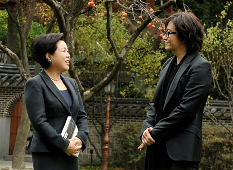 中新網(wǎng)11月11日電 韓國總統(tǒng)李明博的夫人金潤玉女士11月10日在青瓦臺與“韓流明星”裴勇俊見了面。金潤玉是以韓餐世界化推進(jìn)團(tuán)名譽(yù)會長身份邀請裴勇俊。裴勇俊是推進(jìn)委員之一。
