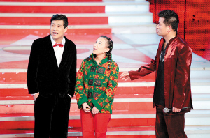 一番插科打諢后,小沈陽和毛毛的“不差錢”組合,開始與星光大道的其他選手進(jìn)行較量,看誰能最終演唱《三槍拍案驚奇》的主題歌。而這一期的嘉賓評委則是“三槍”劇組的主創(chuàng)人員。誰知前幾輪亮分時(shí),“不差錢”組合根本沒占上風(fēng)。眼看唱主題歌的事要黃了,小沈陽和毛毛終于使出最后的殺手锏,請出自己的“舅姥爺”,這“舅姥爺”不是別人,正是導(dǎo)演張藝謀。