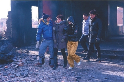 在郊區(qū)的片場,不但氣溫極低,還刮著五六級的西北風(fēng),而樓房周圍連安裝保護措施的位置都沒有,工作人員全棉服上陣還冷得跺腳,可憐的袁立最后凍得連說話都張不開嘴了,而當(dāng)她聽到許小寧發(fā)自心靈的呼喚時,臉上仍然很快就流下幸福的眼淚,表演功力非常了得。在這場戲中臺詞最多的黃磊也被大風(fēng)搞得面目全非,臉龐黑得像火炭,但他仍情愿為自己喜愛的角色奉獻。