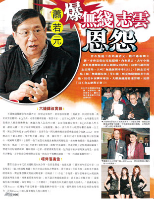 多年來,蕭若元一直不滿無線的壟斷行為。對于陳志云涉貪事件,他有感而發(fā):“我認(rèn)識(shí)他多年,但和他不熟。我很欣賞他的聰明,EQ又高,可惜他聰明有余,智慧不足。”陳志云EQ高眾人皆知,去年蕭若元召集了20多人在書展上攻擊他,無論別人怎么高喊口號(hào),陳志云仍能鎮(zhèn)定微笑。但蕭若元指出:“陳志云太過濫權(quán)、偏心,作為一個(gè)大機(jī)構(gòu)的高層,他不應(yīng)該過分高調(diào),也不該和下屬太過親密,那樣會(huì)很麻煩。蕭定一就是一個(gè)例子,他當(dāng)年和李彩樺拍拖,就被人指偏心!
