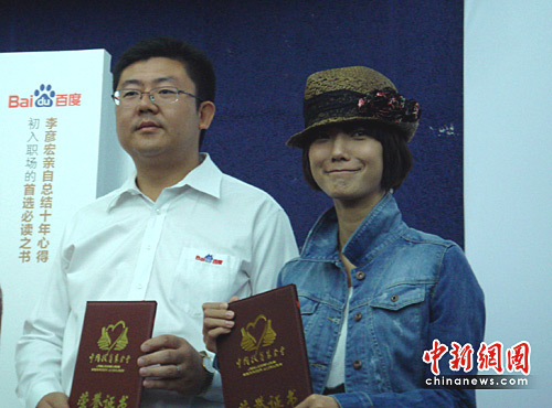 中新網(wǎng)5月10日電 (李季) 10日上午,《壹百度》的姊妹篇《壹百度2——人生可以走直線》在北京大學(xué)舉行首發(fā)儀式。王珞丹作為新書公益大使除了幫助職場新人解讀“陽光法則”外,還向中國扶貧基金會(huì)“宣告”:每賣出一本《人生可以走直線》自己將與百度一起為扶貧基金會(huì)“新長城自強(qiáng)助學(xué)基金”捐出一元錢。