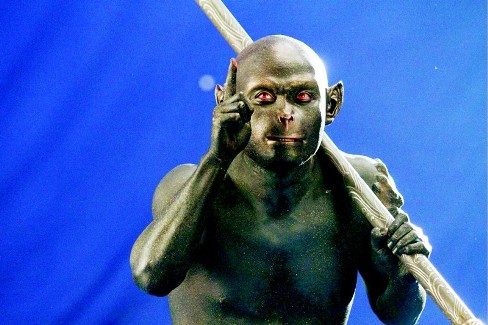 已經(jīng)進入最后拍攝階段的張紀(jì)中版新《西游記》日前又曝光一組孫悟空的全新造型,傳說中的“裸戲”也揭開神秘面紗。據(jù)記者了解,此次曝光的劇照,專為孫悟空被太上老君煉丹爐煉燒的戲份設(shè)計。從劇照中看,由于猴毛在煉丹爐里完全被燒光,這個造型中,吳樾脫掉“猴毛衣”,取而代之的是包括眼睛、嘴唇在內(nèi)身上每一寸皮膚都涂滿烏金色的金粉,整個人都如少林寺18銅人一般,整體看起來就是一個具有中國特色的“阿凡達(dá)”。