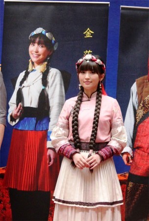 《香格里拉》是歌壇四小天后金莎繼《神話》之后又一次接觸影視劇,對(duì)于自己首次出演少數(shù)民族角色,金莎絲毫不敢怠慢;為了達(dá)到最佳效果,金莎甚至不惜代價(jià)自掏腰包制裝,力求最完美的自己。金莎告訴記者,為了今天的這場(chǎng)發(fā)布會(huì)自己連夜找了服裝設(shè)計(jì)師趕制了這套少數(shù)民族服裝,為的就是提前感受一下香格里拉的人文氣息。的確,金莎今天的這套服裝著實(shí)吸引了不少媒體的閃光燈,搶鏡成功。不過比起演員出身的胡歌來說,金莎則稍顯遜色。