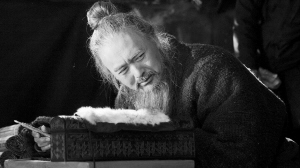 據(jù)有幸看到劇照的業(yè)內(nèi)人士透露,不少片商首先被周潤發(fā)的單人劇照所打動:周潤發(fā)飾演的孔子斫簡著書,驀然回首,雖然是白發(fā)蒼蒼的老人形象,卻不見“蒼老 ”,他的眼神表現(xiàn)出一種時光積淀的睿智。該劇照通過捕捉孔子以至老而忘倦的瞬間形象,展現(xiàn)了圣人“學(xué)如不及,猶恐失之”的精神大域,呈現(xiàn)出濃郁的中國古風(fēng)。